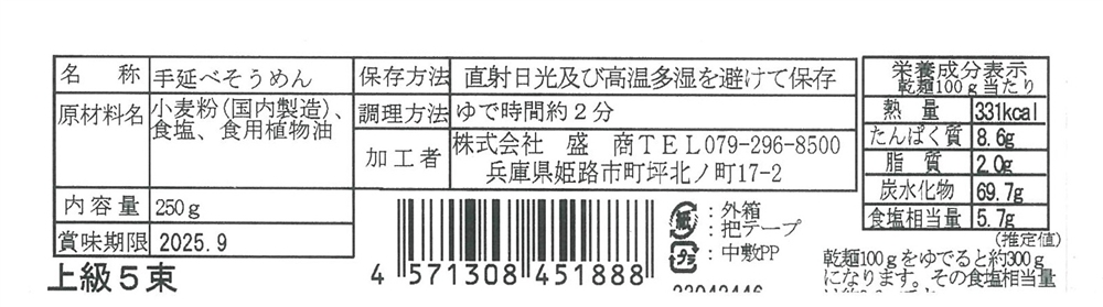 | 備考 | <セット内容> そうめん50g×5束 |