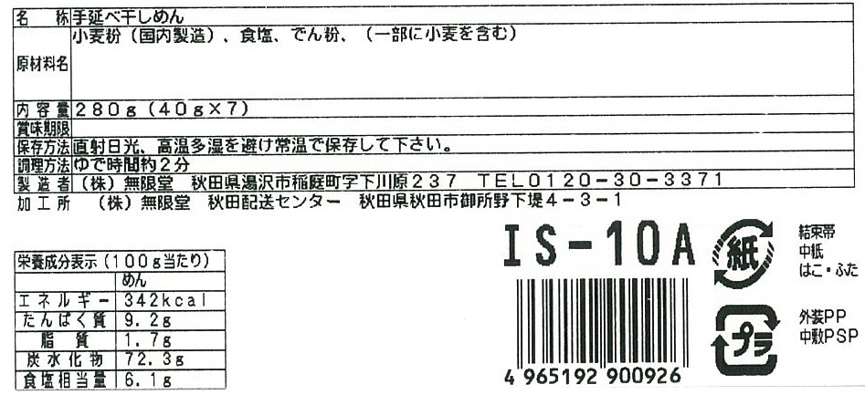 | 備考 | <セット内容> そうめん40g×7束 |