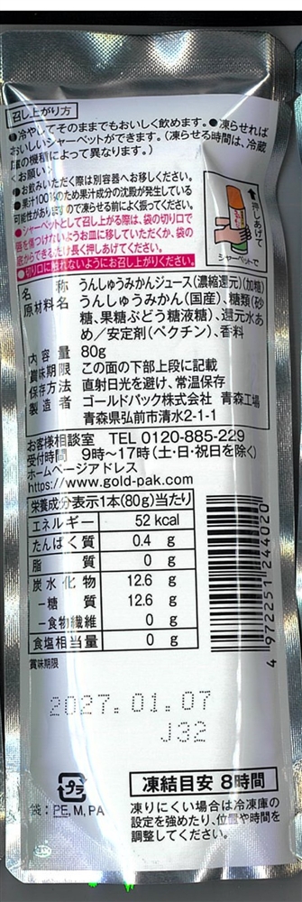 食べたい分だけ凍らせればよいので、冷凍庫を圧迫しません。ハンディータイプの形状で、そのまま凍らせれば片手で押し出しながら手軽に召し上がれます。冷蔵庫で冷やしてそのままジュースとしても。 5つの味で取混ぜ出荷が可能です。