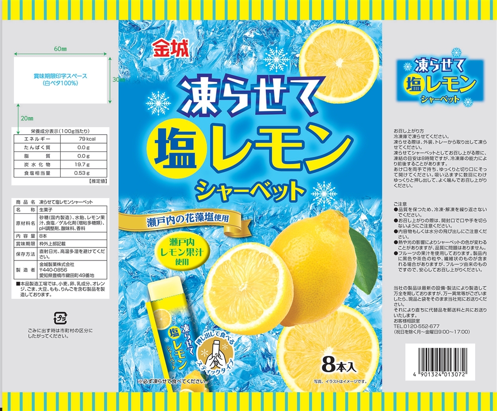 熱中症対策として夏場に失いがちな塩分補給もできる塩レモン味。夏の手軽でおいしいおやつにぴったり!