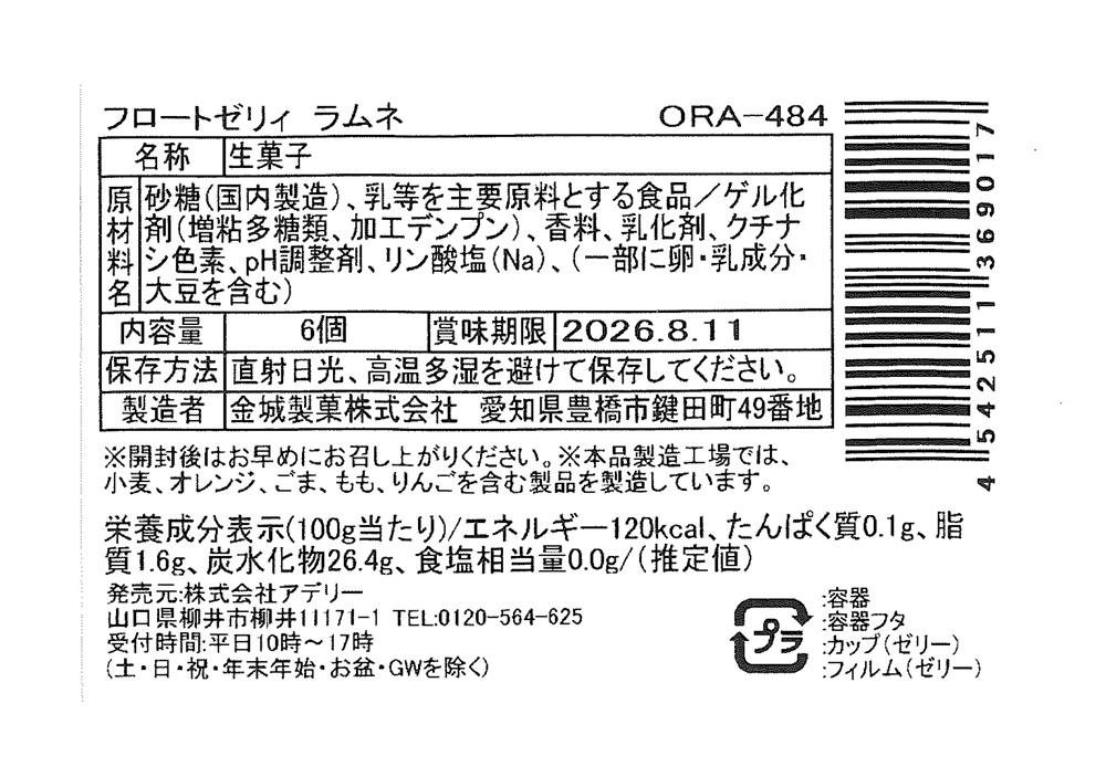 | 備考 | <セット内容> プチソーダフロートゼリーラムネ味×6 |