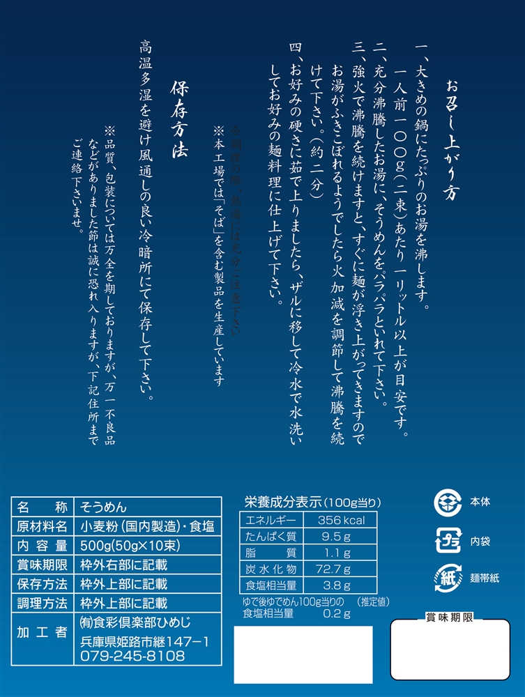 瀬戸内海沿岸は古くから麺作りが盛んな地域として知られ、播州素麺や讃岐うどんに並ぶ伝統の味わいが受け継がれています。吟味を重ねた小麦を使用し、職人が丹念に仕上げた涼味豊かな逸品です。暑い季節にぴったり。贈り物としても喜ばれる重量感のある10束入りセットです。