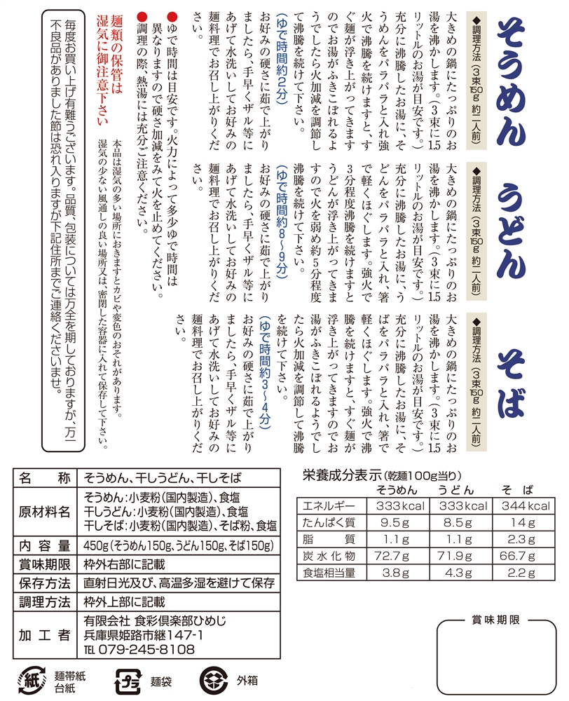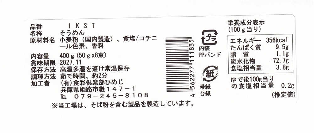 | 備考 | <セット内容> そうめん(白)50g×5束 そうめん(紅)50g×3束 ※お持ち帰りポリ袋をご要望の際はお問合せください |