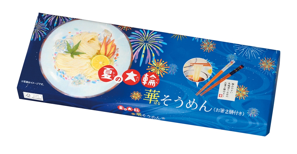 | 備考 | <セット内容> そうめん180g×1 花火柄お箸(全長22.5cm)×2膳 |