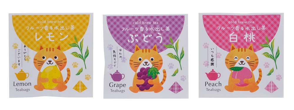 気分で選べる3種の味わいが楽しめます。すっきりとした飲み心地と、ふんわり広がるフルーツの余韻。水に入れるだけで手軽に作れ、すっきりとした味わいを楽しめます。常温保存が可能で、かわいい猫が感謝を伝えるキュートなパッケージ入りは、イベント配布やご挨拶などのプチギフトとしてもおすすめの一品です。