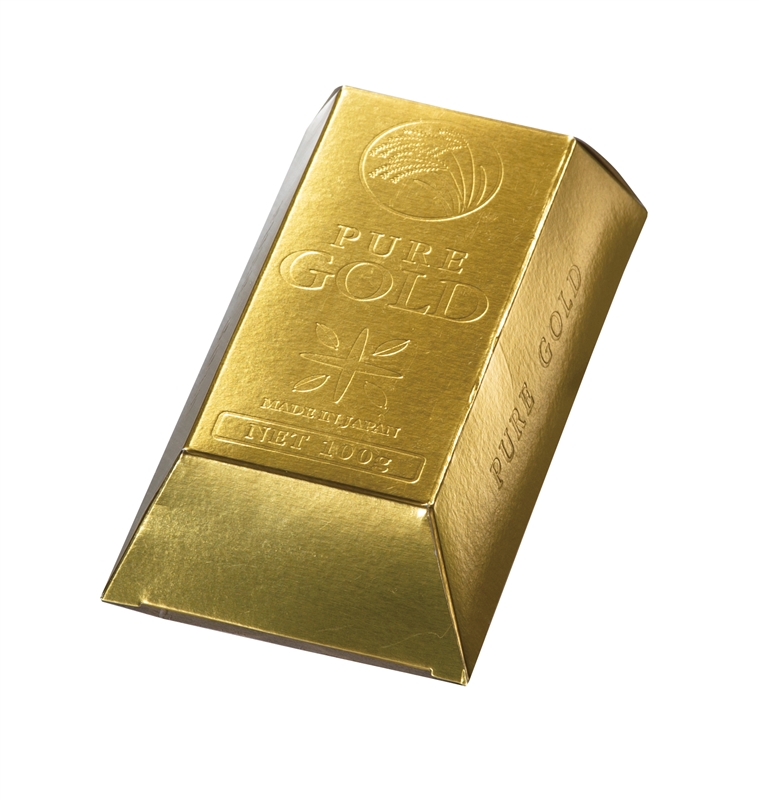 インパクト大!!店頭をゴージャスに彩ってくれる金塊型のパッケージです。