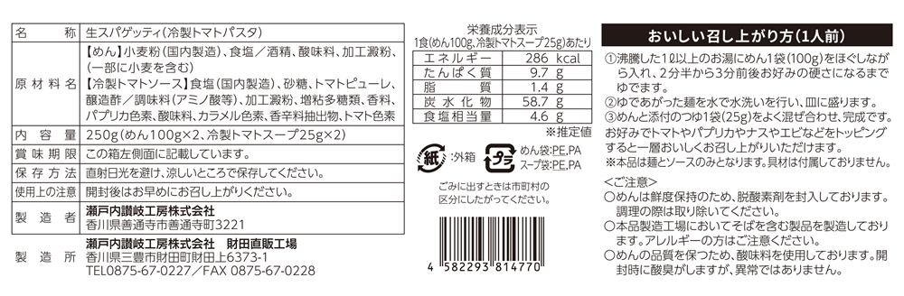| 備考 | <セット内容> 生パスタ麺100g×2 ソース25g×2 |