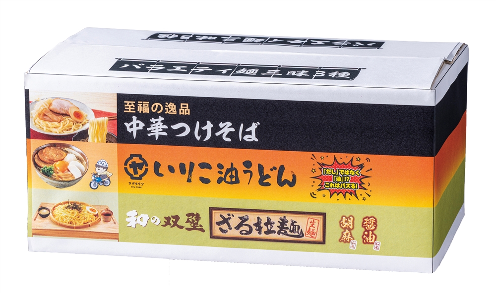 | 備考 | <セット内容> 和の双璧ざる拉麺2人前・至福の逸品旨さ極めし中華つけそば2食・「ヤグタウン」監修いりこ油うどん2食×各1 |