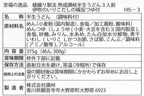至福の逸品 綾織り製法熟成半生讃岐うどん3人前(伊吹のいりこだし極旨つゆ付)