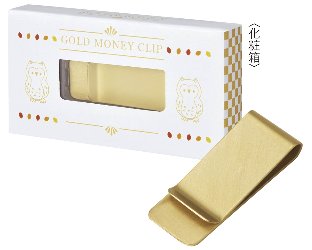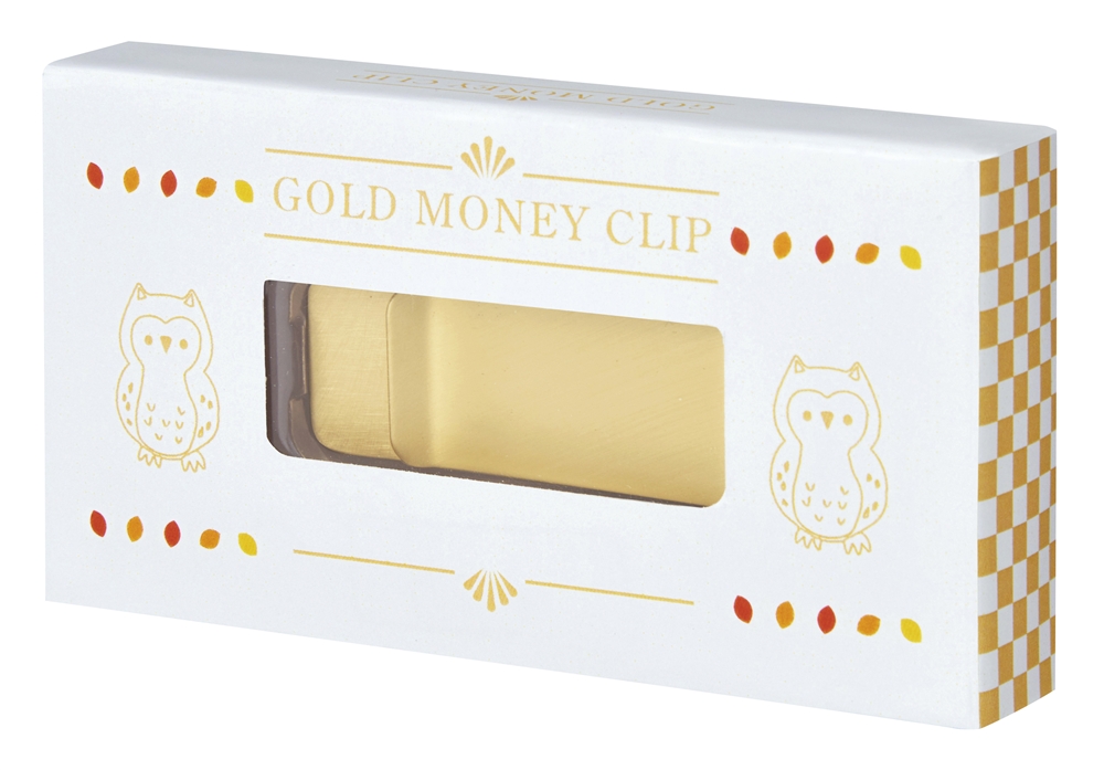 海外旅行に行った際にはチップを渡すときなど、使いこなすとなんだか”カッコイイ”マネークリップです。おしゃれな名入れを施せばオリジナル記念品として喜ばれます。縁起物である「ふくろう(不苦労)」をデザインしたパッケージが印象的です。