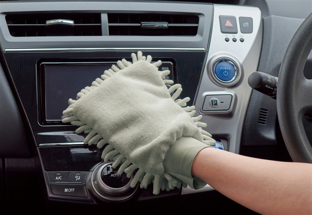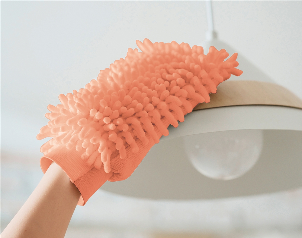 水回りや液晶の拭き掃除にぴったりのマイクロファイバー製。手にはめて、照明や窓、サッシなどもグイグイ拭けます!