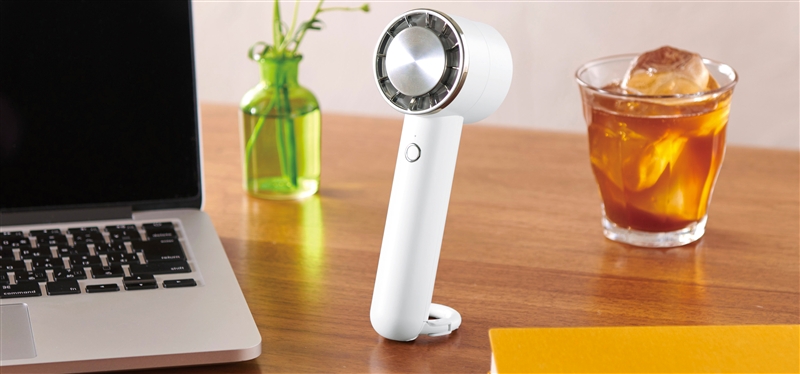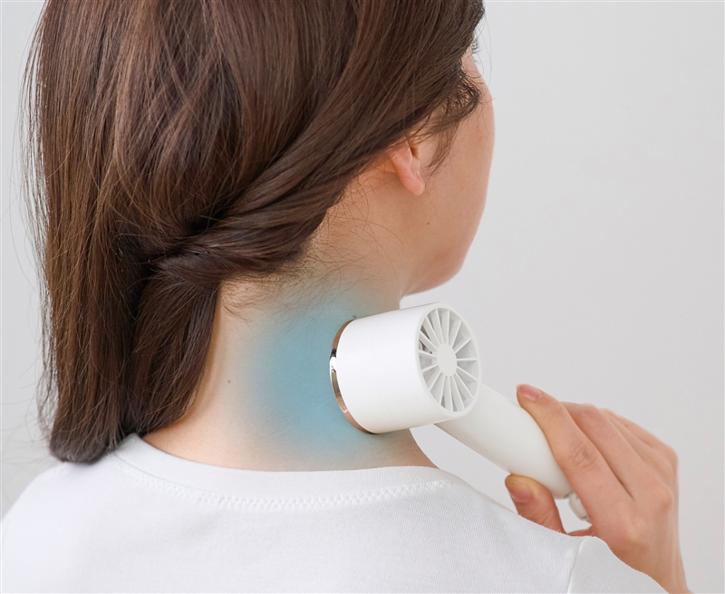 手首や首筋にあててクールダウンできる冷却プレート搭載のハンディーファンです。