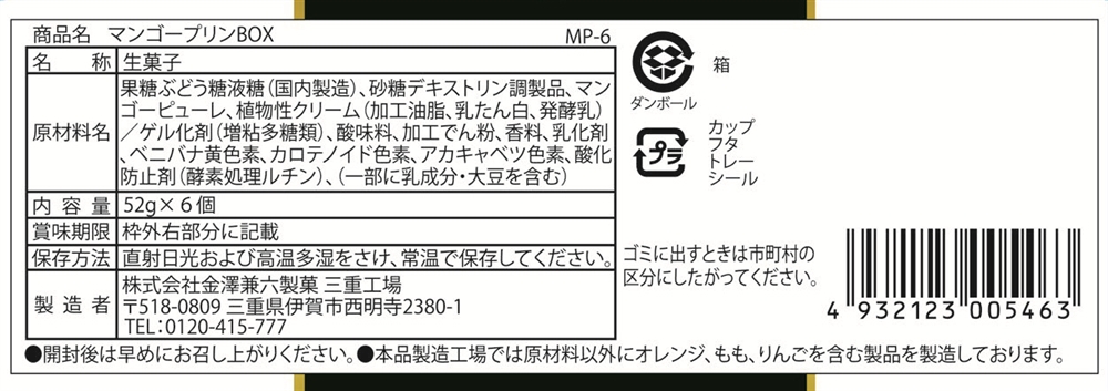 | 備考 | <セット内容> マンゴープリン52g×6 |