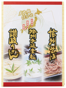 | 注意事項 | 内容量/50g×9束(播州手延べそうめん・信州そば・讃岐うどん 各3)、賞味期間/製造日より730日 |