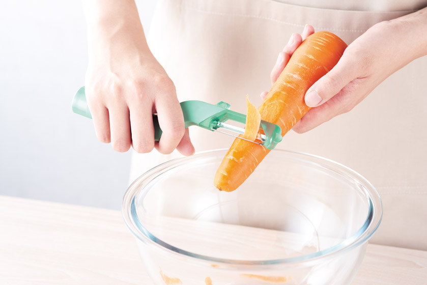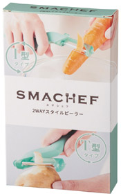 T型形状とI型形状を簡単に切り替え可能ピーラー。