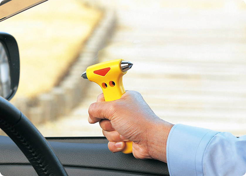 ハンマーで車の窓ガラスを割ったり、