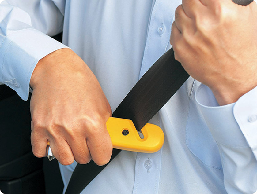 カッターでシートベルトを切ることができます。