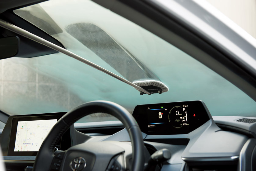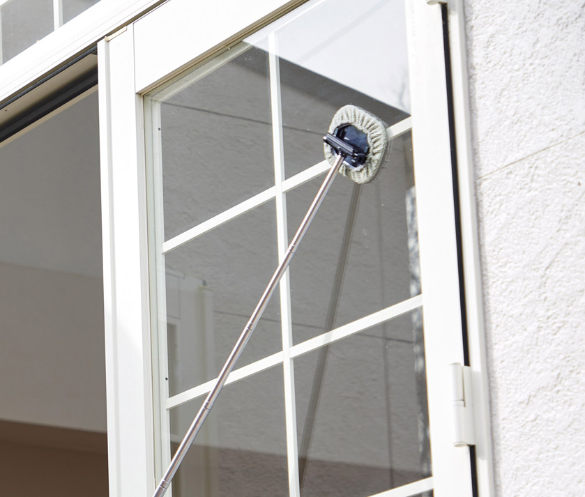 車のフロントガラスや高い窓の掃除に便利。