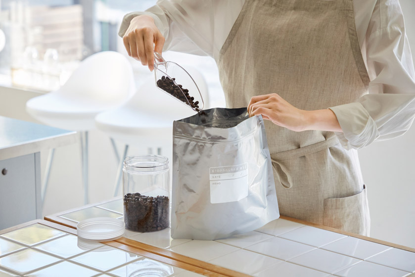 乾燥や臭いから食材を守るアルミジッパー保存袋。