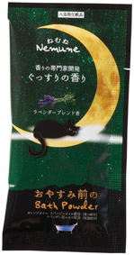 | 注意事項 | セット内容/ライオン休足時間2枚入・花王めぐりズム(無香料)・入浴料バスパウダー(ぐっすりの香り)・フェイシャルマスク(すやすやの香り) |