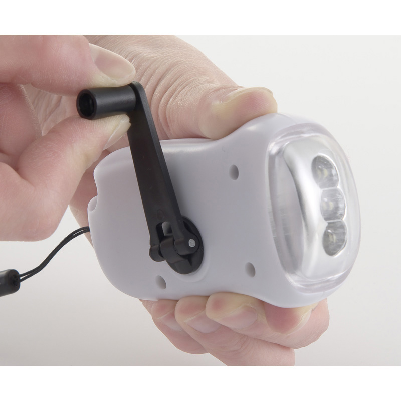 ソーラー充電と手回し充電の2通りができます。約1時間のソーラー充電で約15分点灯します。約120回の手回しで約10分点灯!